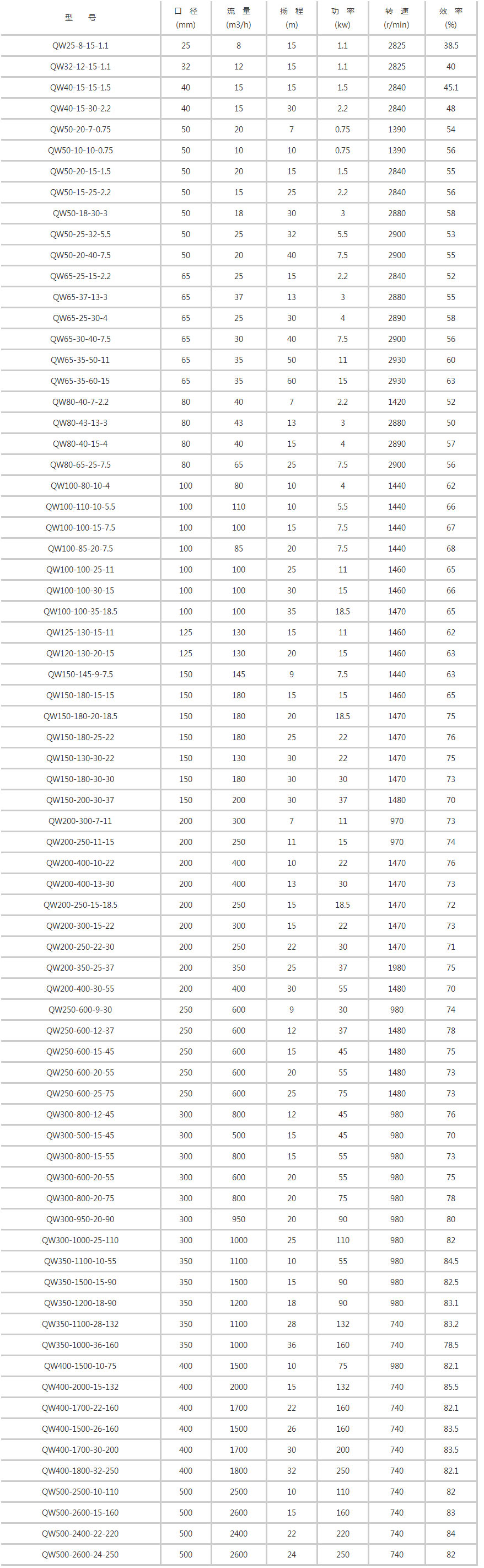 WQ(QW)系列潛水(shui)式無堵塞排(pái)污泵在引進(jin)國外先進技(jì)術的基礎上(shang),在經我廠科(ke)研人員的共(gong)同努力下,同(tóng)時廣泛征求(qiu)國内🔱水泵專(zhuān)家💚的意見,并(bìng)經過多次改(gǎi)良而研制成(chéng)功的,經測試(shì)各項性能指(zhi)标次達到國(guo)外同類産品(pǐn)的先進水平(ping)。潛水排污泵(bèng)流量✉️:7∽2400m3/h,揚程:7∽60m等(deng),潛水排污泵(bèng)根據使用介(jie)質,安裝方式(shì)不同設計制(zhi)造成同性能(néng)參數的WL、YW、GW系列(lie)産品。