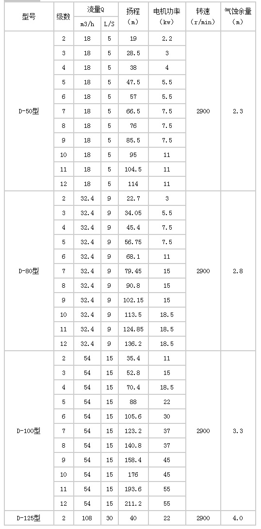 型号意義: D、DG型卧(wò)式鍋爐給水多級(jí)泵