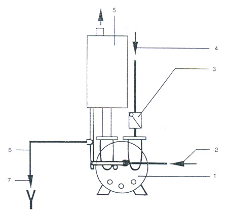 1. 2BV 真空(kōng)泵 2. 供水管 3. 逆(nì)止閥 4. 吸氣管(guan) 5. 氣水分離器(qì) 6. 排氣管 7. 溢水(shui)管