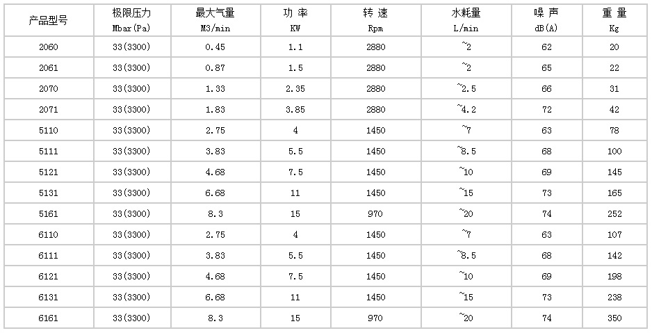 2BV型水環式(shi)真空泵的主(zhǔ)要技術數據(ju):