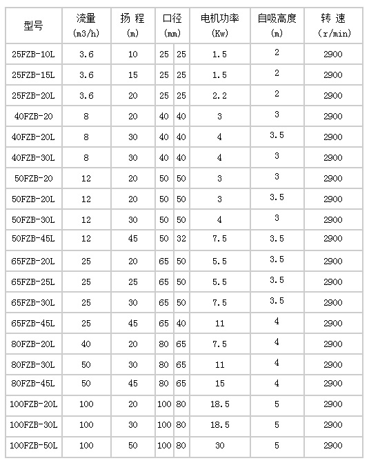 技(ji)術參數: FZB型氟塑(su)料自吸化工泵(beng)